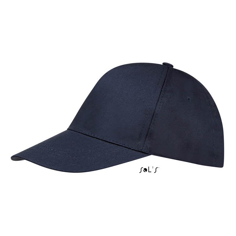 Бейсболка з 5 клинами SOL’S BUZZ. Матеріал: 100% бавовна твілл. Щільність: 150 г/м². Жорсткий козирок. 4 отвори з вишивкою для вентиляції. Регулюється на липучках.