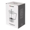Френч-прес підходить для заварювання, як чаю так і кави. Каркас з пластику (PP Поліпропілен харчовий), колба з борисілікатного високоякісного скла, внутрішні деталі з нержавіючої сталі. Висота 18,2 см., діаметр 9 см. Об’єм 600 мл. Індивідуальна картонна подарункова коробка. Розмір індивідуальної коробки: 20 х 13,5 х 10 см. Рекомендований метод нанесення: тамподрук, уф-друк.