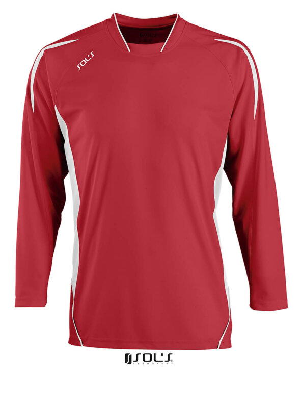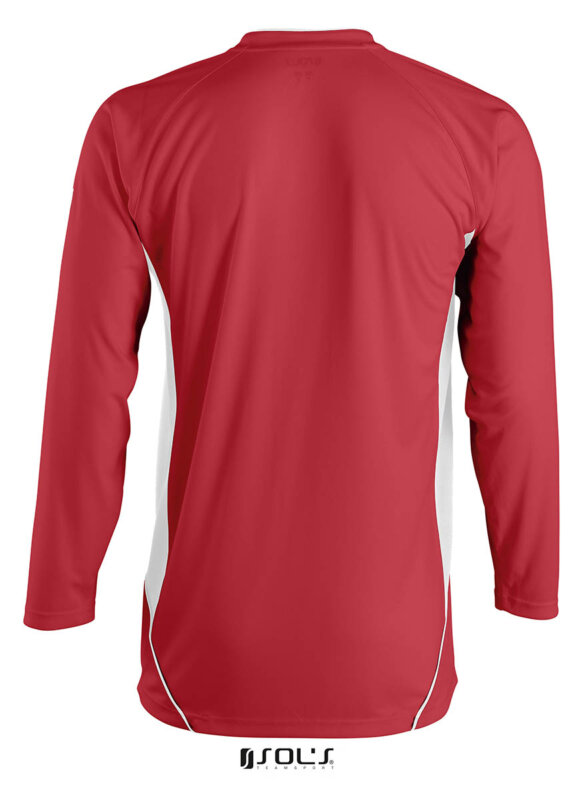 Футболка дитяча з довгим рукавом SOL’S MARACANA KIDS LSL. Англійська воріт з обробкою контрастного кольору. Рукав реглан. Великі вставки «стільники» з боків і перфорована вставка на рукавах забезпечують відмінну повітропроникність. Задній край закруглений і злегка подовжений. Вишитий контрастною ниткою логотип. Матеріал: Інтерлок, поліестер