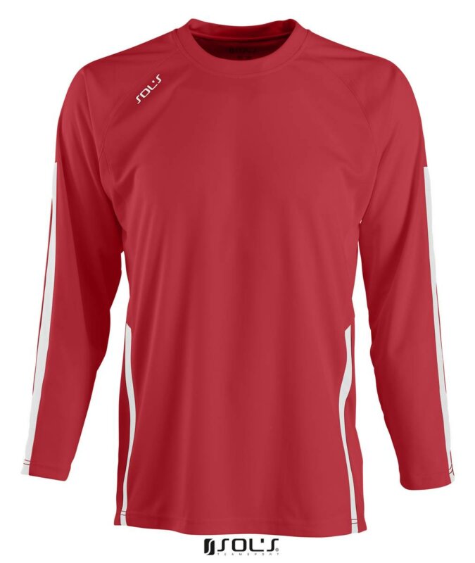 Футболка з коротким рукавом SOL’S WEMBLEY SSL. Модель з круглим коміром і рукавом реглан забезпечена перфорованими вставками спереду, на спині і на рукавах. Задній край закруглений і злегка подовжений. Довгий рукав. Вишитий контрастною ниткою логотип. Матеріал: Інтерлок, поліестер 100%. Питома вага: 140 г / кв.м.