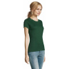 Жіноча футболка Imperial 190 — модель преміум-класу. Виріз оброблений рібом з додаванням еластану. Подвійні шви для запобігання деформації виробу, зміцнююча тасьма по коміру. Короткі рукава. Широка колірна гамма.