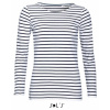 Французька класика з гребінної бавовни. Кругла горловина. Контрастні деталі в стилі denim у внутрішній стороні горловини. Подвійні шви для запобігання розтягуванню. Закруглені рукави. Приталена модель.