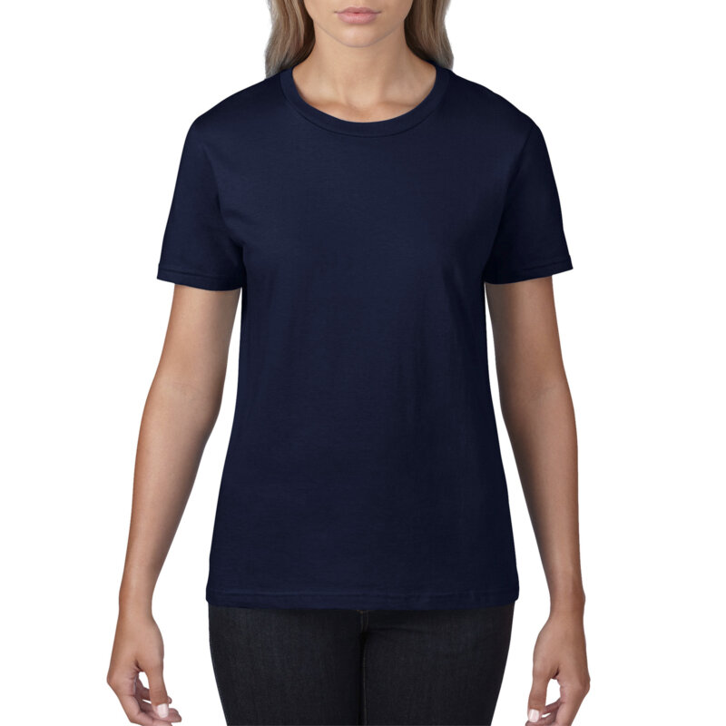 Футболка жіноча з круглою горловиною. Щільність – 185 г/м.кв., біла – 180 г/м.кв