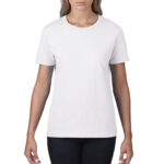 Футболка жіноча з круглою горловиною. Щільність – 185 г/м.кв., біла – 180 г/м.кв