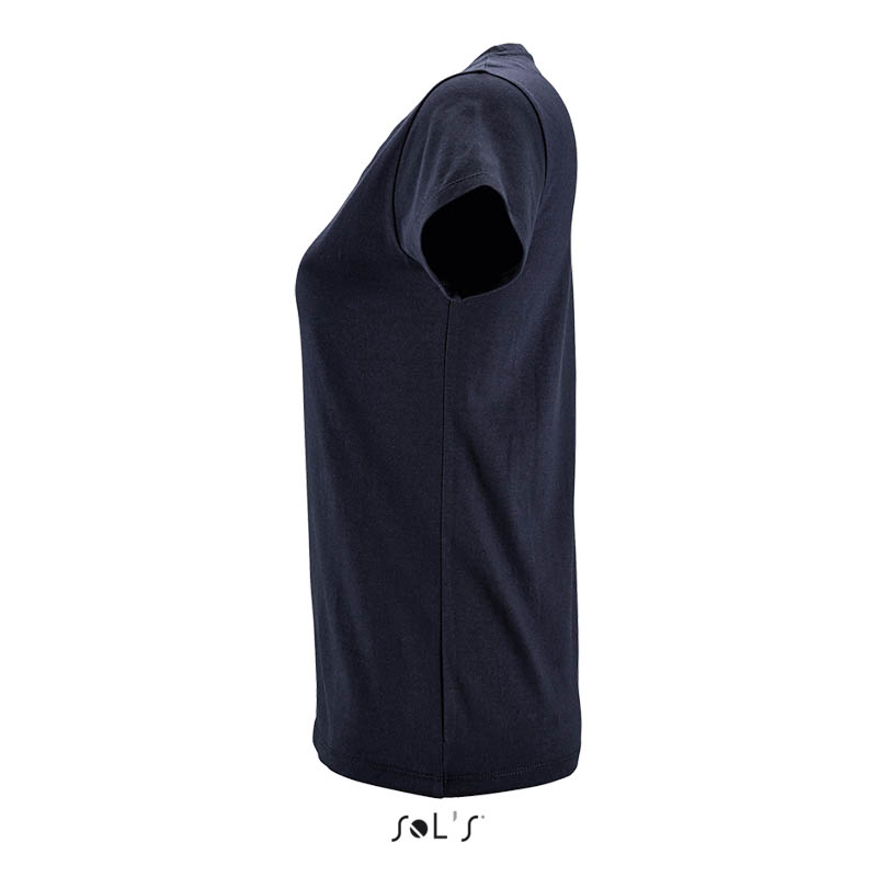 Жіноча футболка Imperial 190 — модель преміум-класу. Круглий комір оброблений рібом. Зміцнююча тасьма по коміру, подвійні шви. Виріб виконаний з трикотажного полотна. Приталений крій.