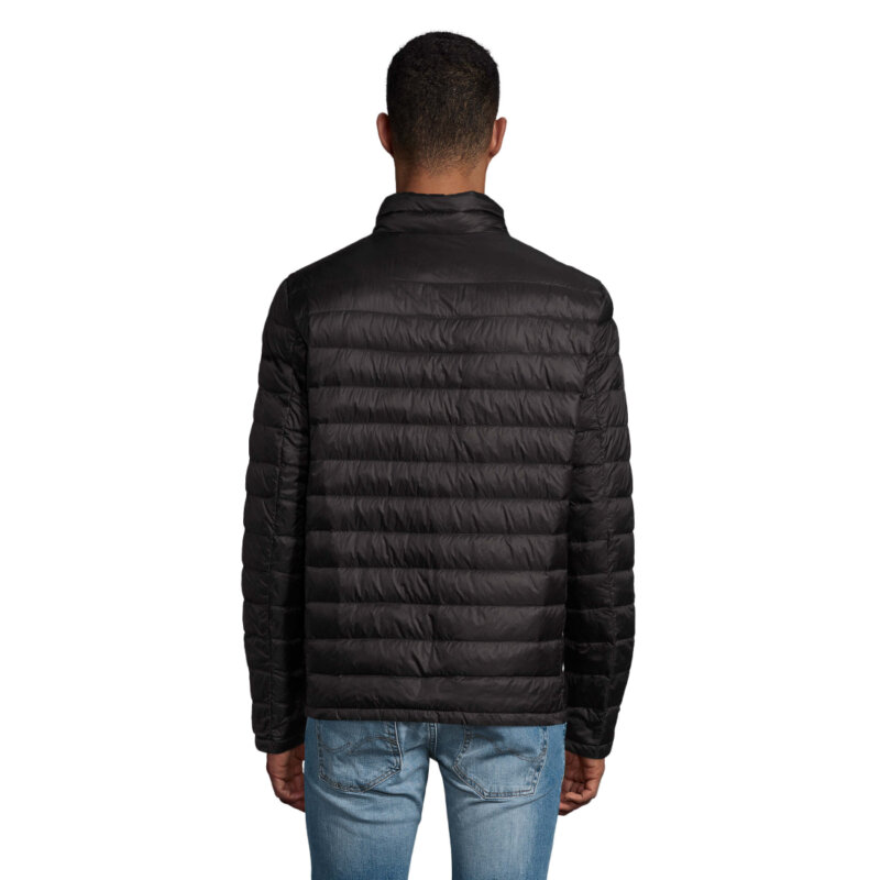 Чоловіча легка стьобана куртка WILSON MEN. Матеріал: НЕЙЛОН 380Т. Зовнішня тканина і підкладка: 100% поліамід. Набивка: 90% пух, 10% перо. Вага: 70 г. Застібка-блискавка. 2 передні кишені на блискавці. 2 внутрішніх кишені. Невеликий комір-стійка. Облягаючий крій. Система “in bag”: складається до торбинки на шнурку зі стопорами. Тепла і легка стьобана куртка.