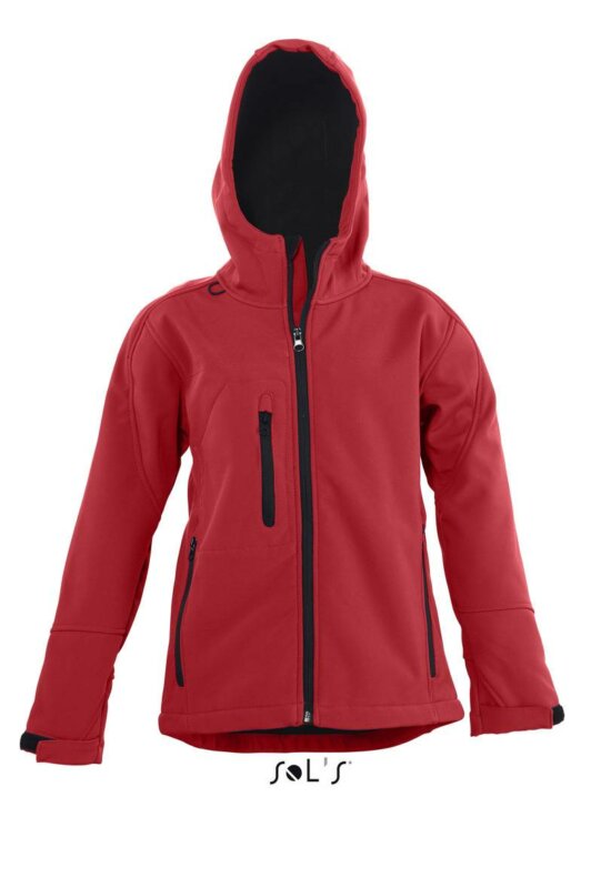 Куртка дитяча з капюшоном софтшелл SOL’S REPLAY KIDS. 2 бічних і 1 нагрудна кишені на блискавці, манжети, регульовані липучкою, капюшон без стягуючого шнура.