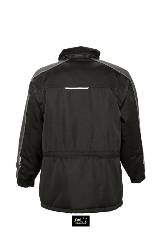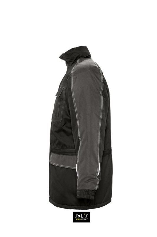 Куртка SOL’S FUSION PRO. Капюшон, що складається в комір, застібка з планкою, лита блискавка в тон і кнопки, світловідбиваючі вставки на нагрудних кишенях, манжетах і на спині; контрастна обробка: на плечах, рукавах і клапанах кишень еластичні манжети на липучці, 8 кишень. Матеріал: ОКСФОРД 600D.