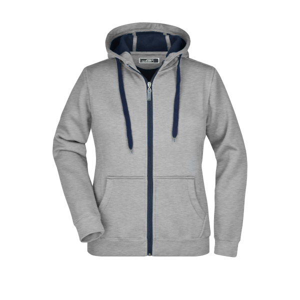 Створюйте унікальні брендовані подарунки для вашого бізнесу! Ми спеціалізуємося на друку логотипів, слоганів та корпоративної символіки на різноманітних товарах, включаючи Куртка жіноча спортивна James Nicholson, сірий/темно-синій.