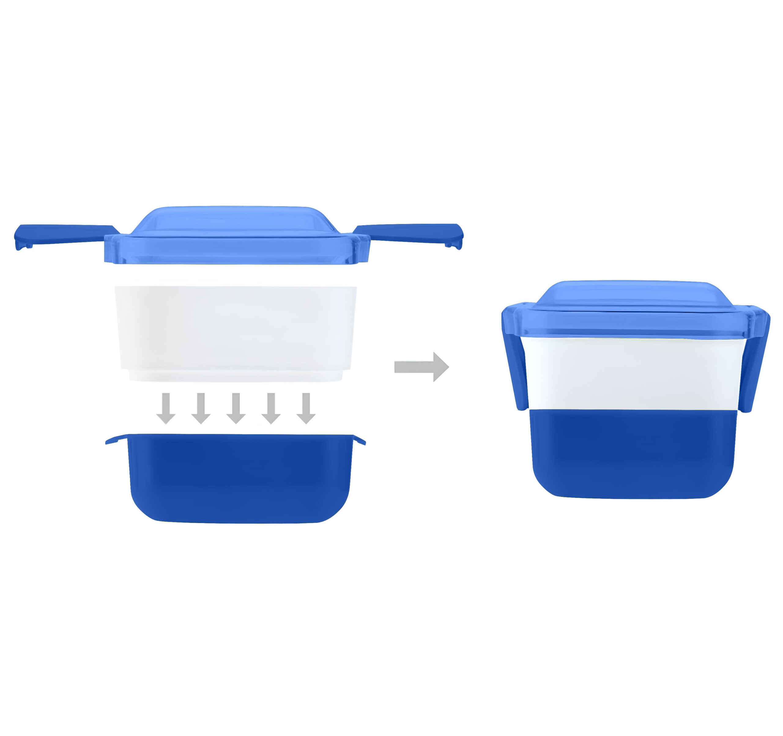 Розмір в складеному вигляді: 18,9 х 13 х 6,4 см. Розмір в розкладеному вигляді: 18,9 х 13 х 9,3 см. Подвійна конструкція – складається з двох окремих контейнерів що дозволяє розділяти страви. Щільна кришка з фіксатором (подвійні замки) – надійно закривається, запобігаючи протіканню. Компактний дизайн – зручно брати із собою на роботу, навчання чи пікнік. Ідеальний для щоденного використання.