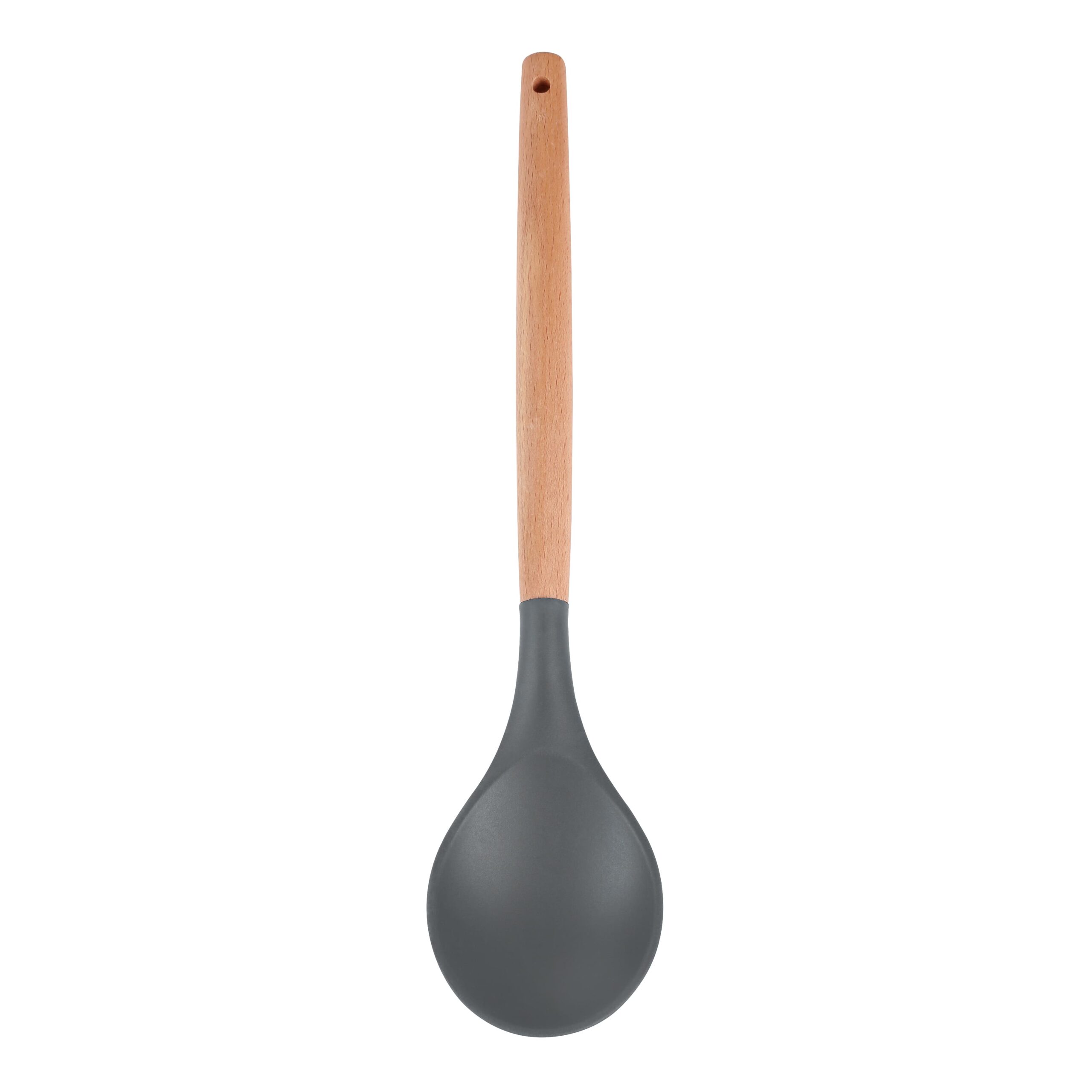 Якісна салатна ложка, зручна та придатна також при приготуванні пасти. Ручка ложки виготовлена з деревини ясеня, що попередить від опіків, а нижня частина метал + пластик покритий температуростійким силіконом. Розмір ложки 31,5 см. Нанесення гравіювання, тамподрук.