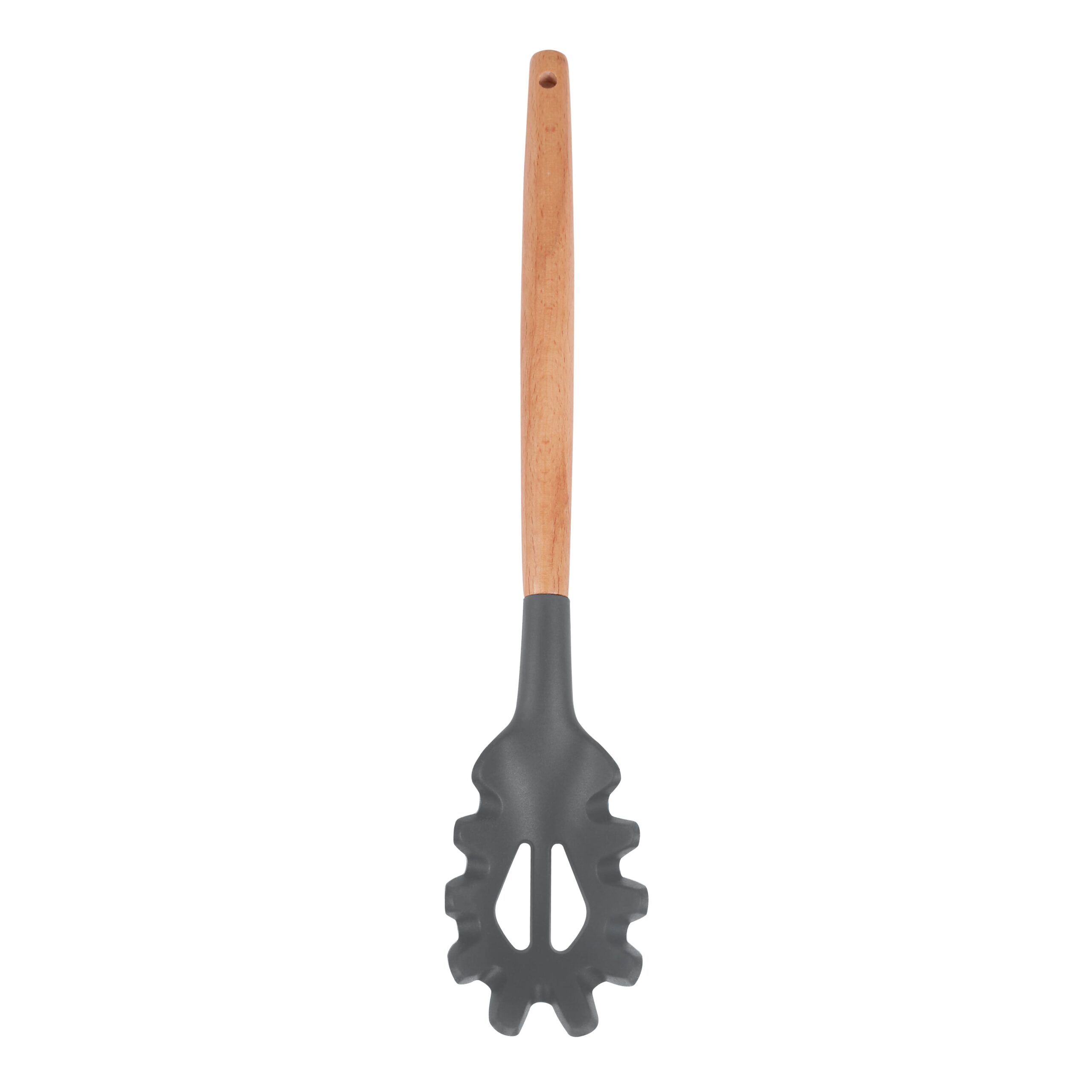 Якісна салатна ложка, зручна та придатна також при приготуванні пасти. Ручка ложки виготовлена з деревини ясеня, що попередить від опіків, а нижня частина метал + пластик покритий температуростійким силіконом. Розмір ложки 31,5 см.