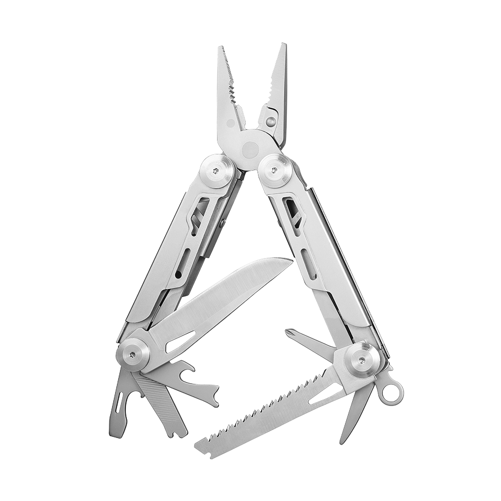 Мультитул на 9 функцій з фіксатором елементів, що відкриваються, у чохлі з нейлону (розмір в закритому стані 10,5 х 4,2 х 2,2 см)