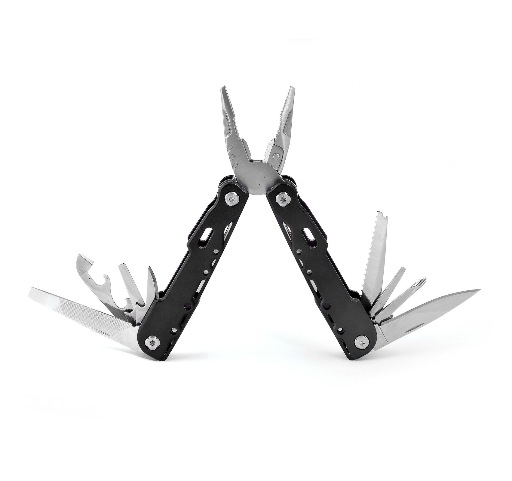 Мультитул на 9 функцій з фіксатором елементів, що відкриваються, у чохлі з нейлону (розмір в закритому стані 10,5Х4 см.)