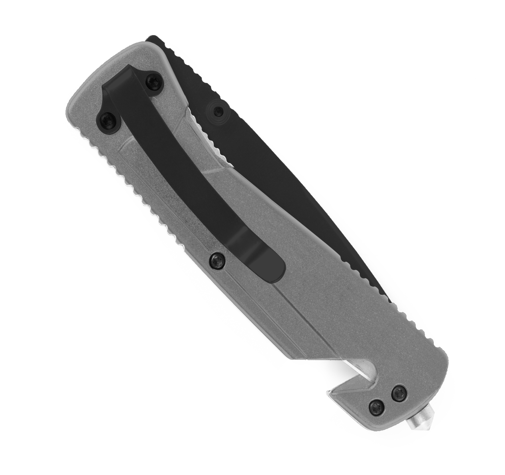Ніж з високоякісної нержавіючої сталі, гострим лезом з фіксатором, кліпсою для чіпляння на ремінь. Має такі додаткові безпекові функції: – Стержень для вибивання і розбивання скла в автомобілі у випадку аварії якщо закриті або заблоковані двері. Ця функція може врятувати вам життя. – Подвійне приховане лезо для легкого обрізання реміня безпеки якщо заклинило реміневий механізм. Упаковка елегантна чорна коробка. Розмір в складеному стані 11,5 см., у відкритому 20,1 см.