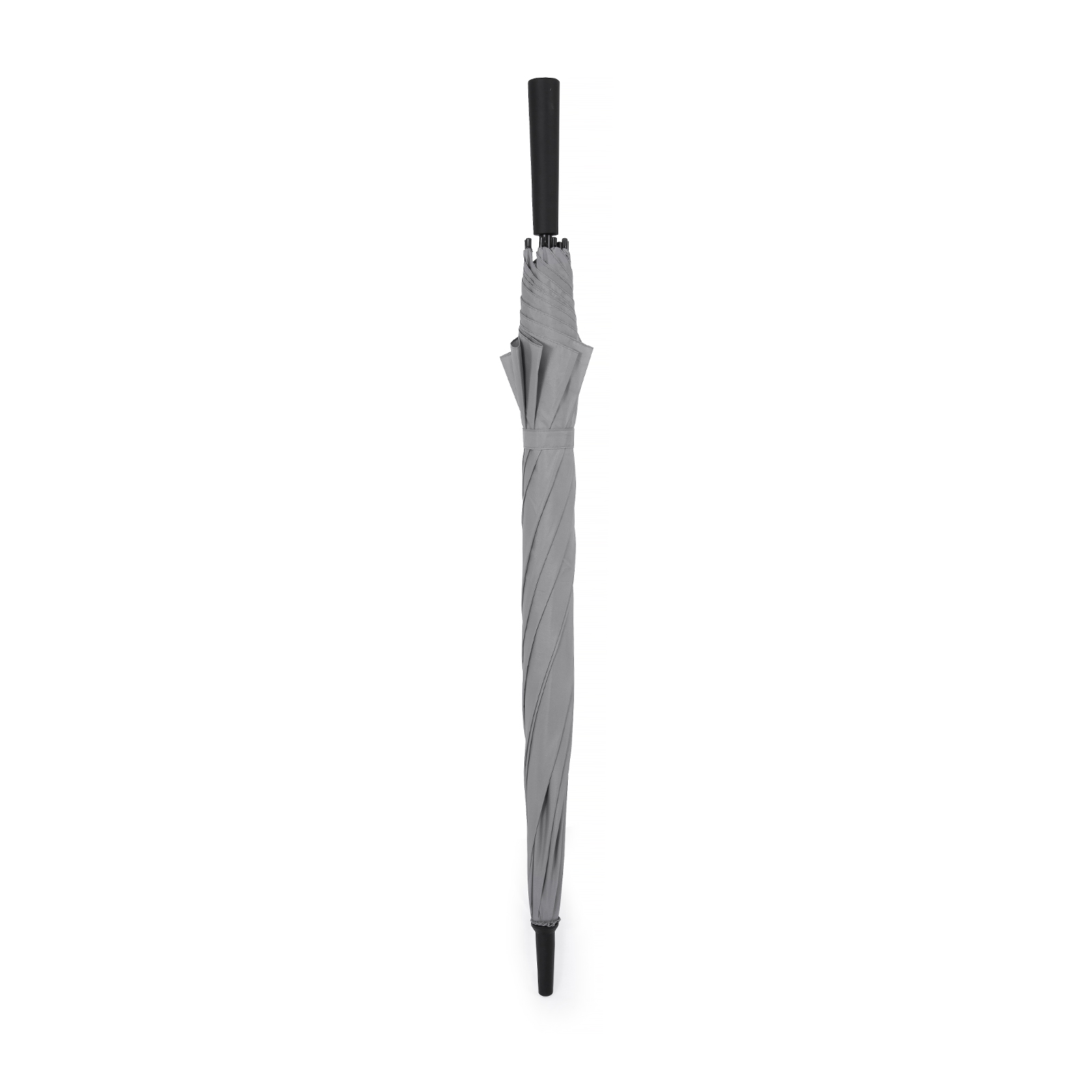 Парасоля-тростина напівавтомат з зручною пластиковою ручкою покритою софт-тач, довжина парасолі 94 см, спиці та відкривний механізм виготовлені зі скловолокна та пластику, металевий стержень.