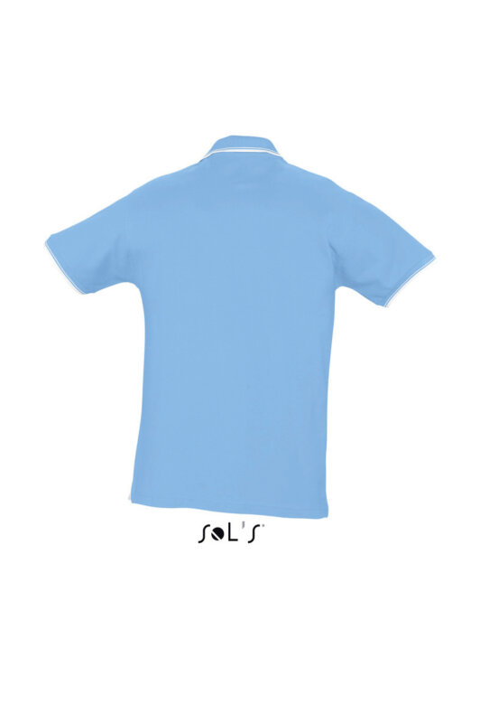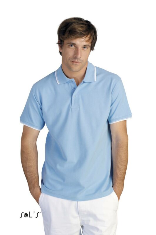 Сорочка поло «гольф» чоловіча SOL’S PRACTICE. Комір і нижній край рукавів в смужку контрастного кольору -планка з 3 гудзиками в тон, низ виробу з бічними розрізами контрастного кольору з твила; виріб викроєн з трикотажного полотна. Матеріал: ТРИКОТАЖ піке 270. гребінь 100% бавовна, комір і нижні краї рукавів в резинку, зміцнююча тасьма по коміру. Варіант для жінок: PRACTICE WOMEN-11366
