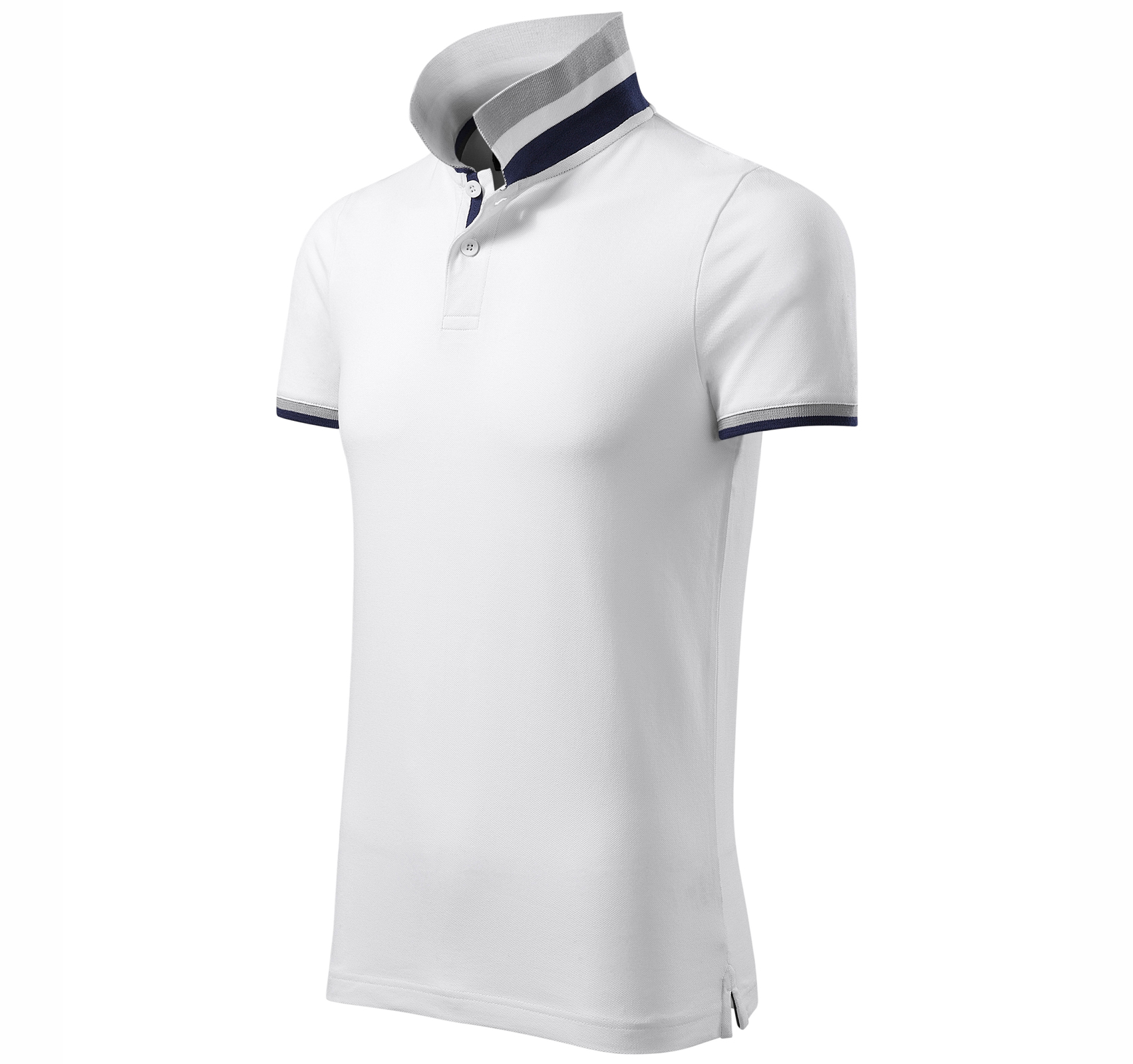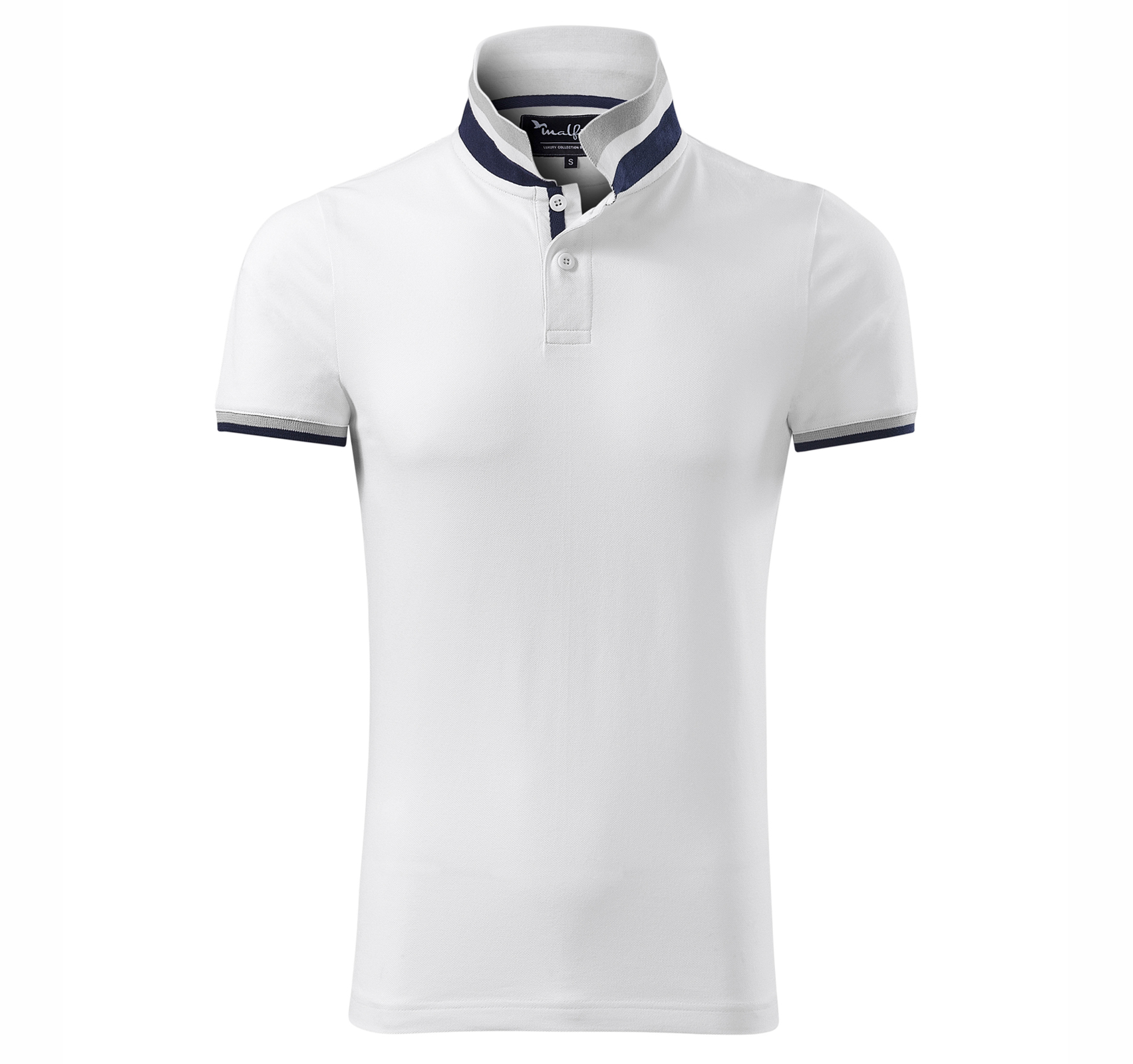 Матеріал: піке, 100% бавовна. Крій з бічними швами. Комір та рукави в’язані в рубчик 1:1. Нижня частина коміра і подолу рукавів з контрастними смугами. Планка на 2 ґудзиках кольору черепашка. Розрізи в бічних швах і нижня планка з контрастною стрічкою. Внутрішній виріз з контрастною стрічкою.