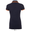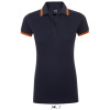 Приталена жіноча сорочка поло. Комір і манжети оброблені рібом. Дві контрастні смужки на комірі і манжетах, зміцнююча тасьма по коміру. Планка на 3 гудзики в тон вироба, низ виробу з бічними розрізами. Запасний ґудзик на внутрішньому боковому рядку вироба.