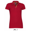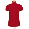 Стильна жіноча сорочка поло з коротким рукавом. Контрастна зворотня сторона коміра. Посилена планка з трьома білими перламутровими ґудзиками, контрастна стрічка-вставка на планці і на внутрішній тасьмі по коміру. Декоративна двоколірна вставка на зовнішній стороні рукава і бокових розрізах по низу вироба (зсередини). Виріб викроєний з трикотажного полотна. Низ рукавів та комір в резинку. Приталений крій. Запасний ґудзик на внутрішньому боковому ряді вироба.