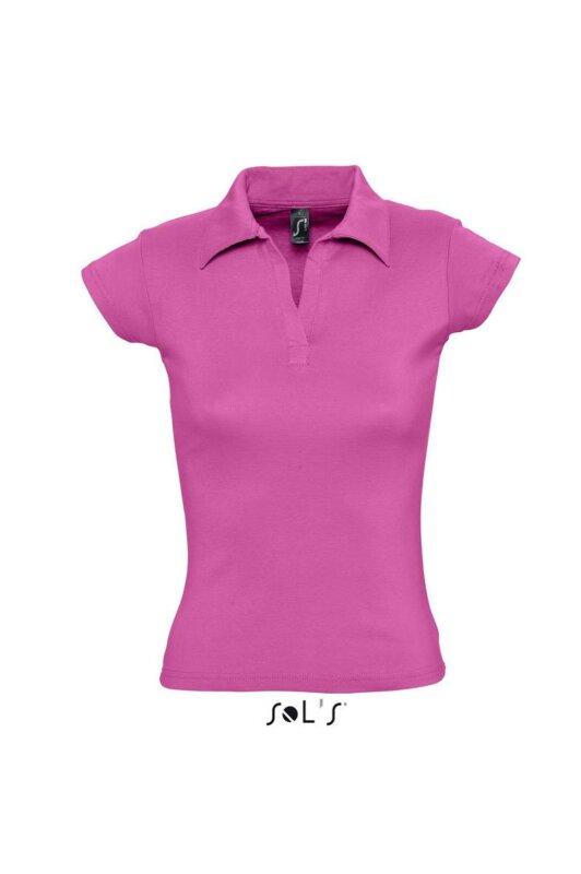 Жіноче поло PLANET WOMEN. Короткий рукав. Планка з 3 гудзиками в тон виробу. Прямий низ. Кроєнний трикотаж. Запасний гудзик в бічному шві з внутрішньої сторони.
