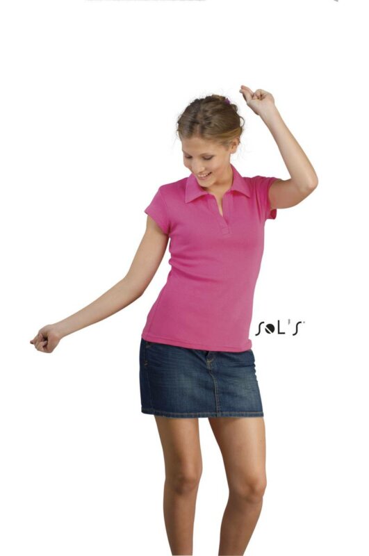 Сорочка поло жіноча з американською проймою SOL’S PRETTY. Облягаюча, приталена модель, комір з планкою без ґудзиків; виріб викроєн з трикотажного полотна. Матеріал: 220 г/м. Напівгребенн 100% бавовна.