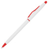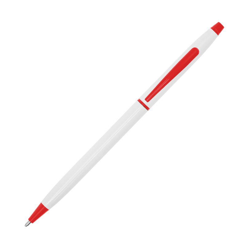 Акуратна металева ручка з глянсовою білою поверхнею і кольоровими елементами. Колір гравірування – срібло.