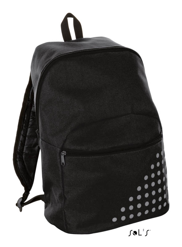 Рюкзак з поліестeра 600d зі світловідбиваючими деталями. Містке центральне відділення на блискавці. Передня кишеня на блискавці. Регульовані посилені стьобані плечові ремені. Світловідбиваючий друкований малюнок на передній кишені.