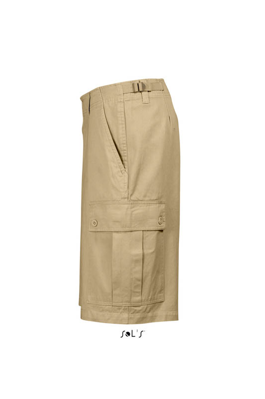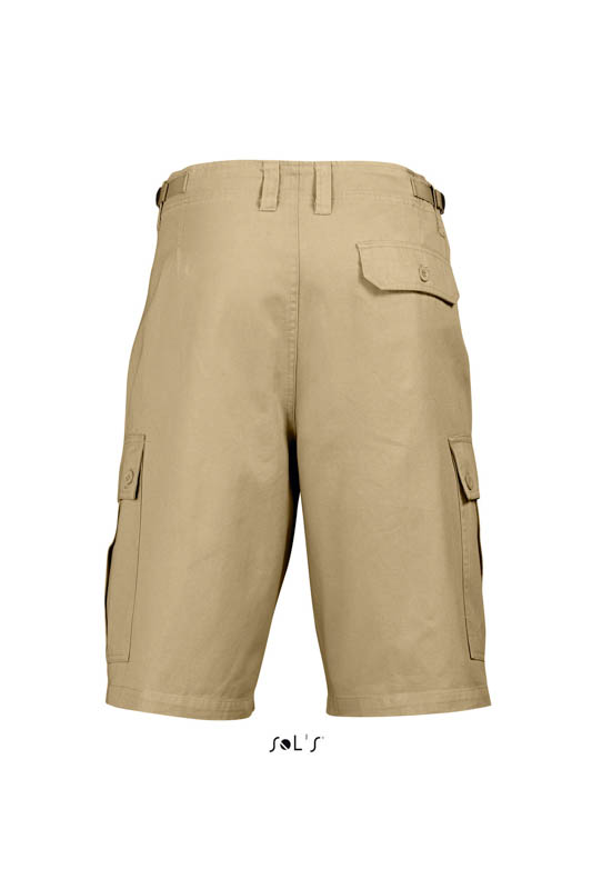 Шорти по коліна чоловічі SOL’S JUNGLE. Стиль: зручний і модний. Застібка на ґудзиках, розмір регулюється стягуючими планками з обох сторін, 2 передніх кишені, 2 бічних кишені на ґудзиках з клапанами, задня кишеня з клапаном декорована лампасами. Матеріал: ТВІЛЛ 235, 100% очищена бавовна.