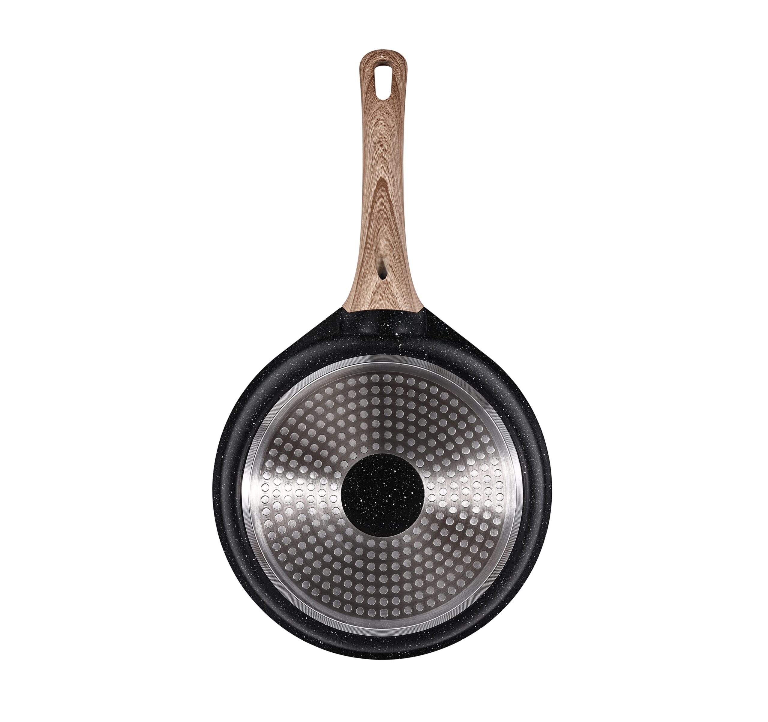 Сковорода виготовлена з литого алюмінію з антипригарним покриттям з керамічним вкрапленням. Корпус сковороди забезпечує рівномірний розподіл і тривале збереження тепла, що дозволяє готувати страви будь-якої складності. Ручка виготовлена з бакеліту із покриттям Soft Touch, що забезпечує максимальний комфорт при використанні. Підходить для всіх видів плит, включаючи індукційні. Ручка на сковорідці дуже добре підходить під лазерне гравіювання логотипу.