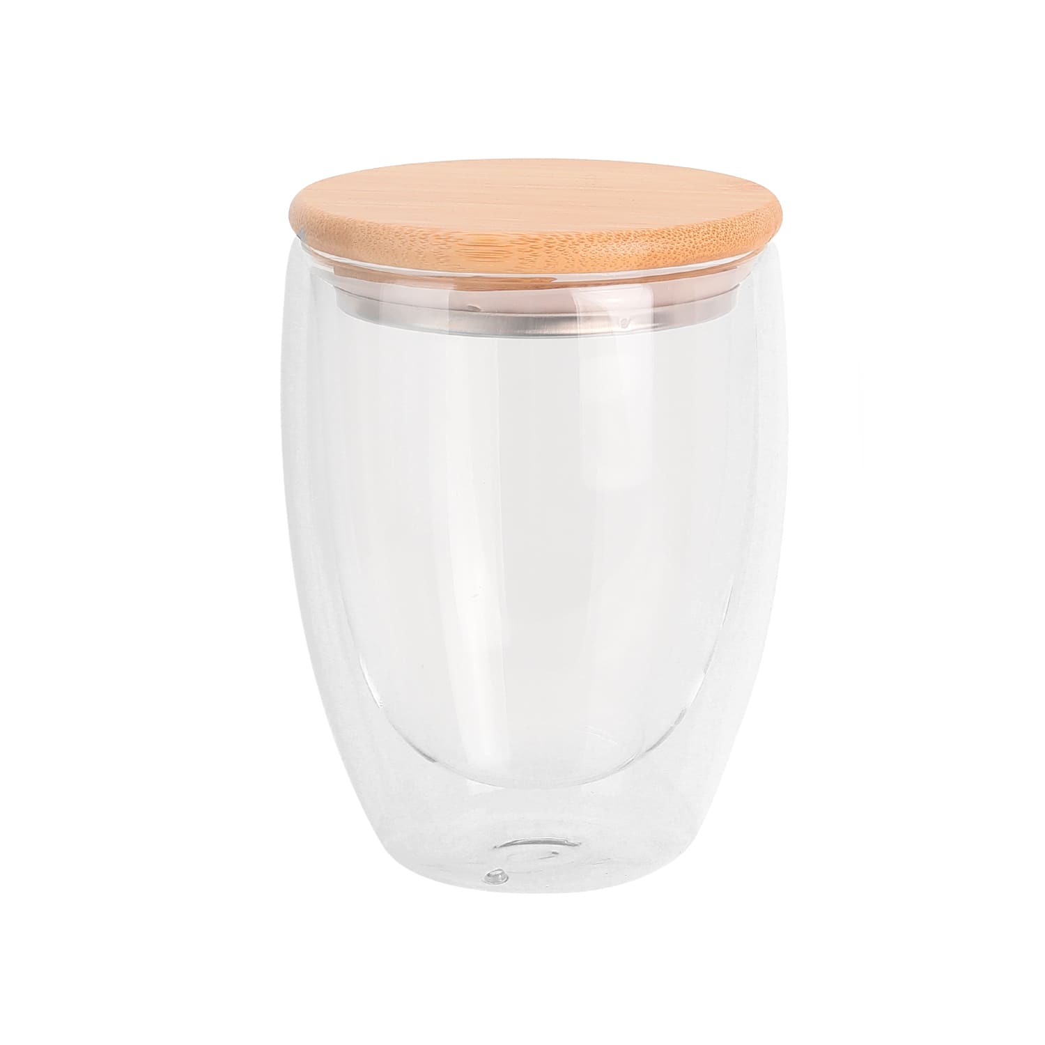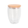 Склянка з подвійними стінками з високоякісного боросилікатного скла та кришкою з бамбука з силіконовим кільцем. Місткість 350 мл.