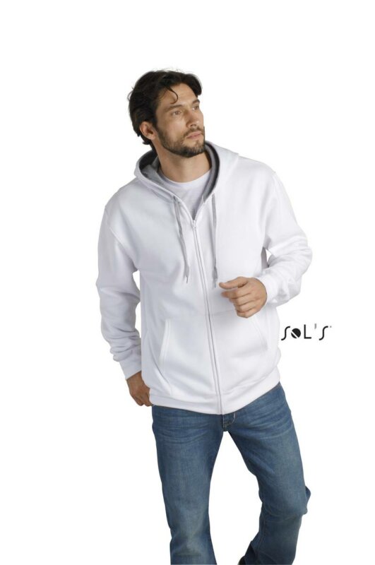 Світшот чоловічий контрастних кольорів, внутрішня сторона з мольтона з начосом. Матеріал: 280 мольтон, 50% бавовна – 50% поліестер. 2 кишені кенгуру, низ виробу і манжети пов’язані резинкою з еластану, внутрішня сторона капюшона з мольтона з начосом контрастних кольорів, еластичний стягуючий шнур по низу виробу контрастних кольорів; приталена модель. Прихована блискавка.