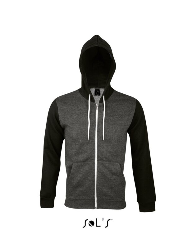 Світшот унісекс на блискавці з капюшоном з білим контрастним шнурком. Вшивний рукав;