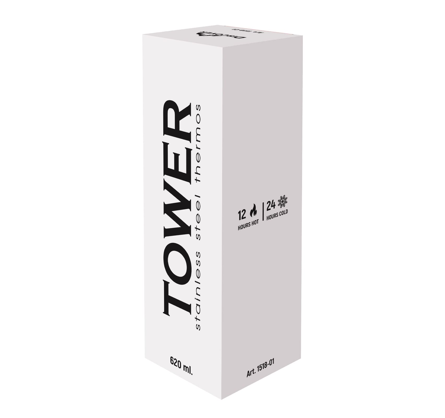 Термопляшка з подвійними стінками із нержавіючої сталі. Підтримує температуру до 12-ти годин. Висота 24,8 см., діаметр 7,8 см. Об’єм 620 мл. Індивідуальна картонна подарункова коробка. Розмір індивідуальної коробки: 26 х 7,8 х 7,8 см. Рекомендований метод нанесення: гравіювання та УФ друк. Діаметр місця нанесення на кришці 4,1 см.