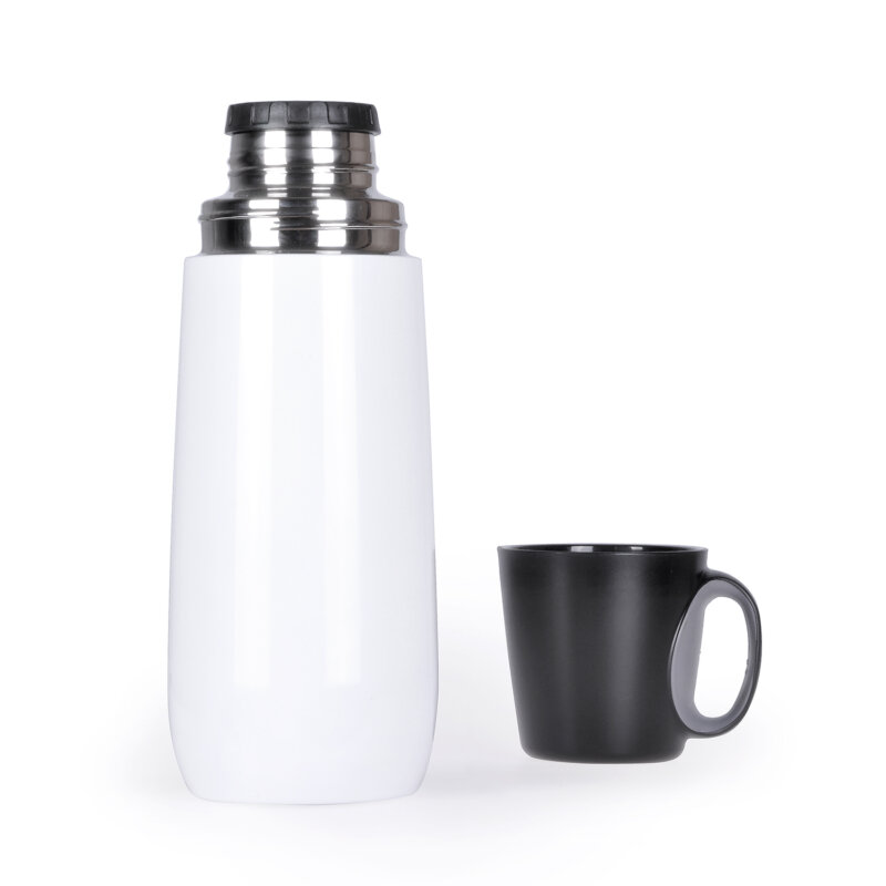 Термос 600 мл. Подвійна вакуумна колба з нержавіючої сталі, кришка з герметичним клапаном. Кришку можна мити в посудомийній машині. Корпус мити тільки вручну, щоб не пошкодити кольорове покриття. Підтримує температуру до 12 годин. Індивідуальна картонна подарункова коробка. Розмір індивідуальної коробки: 25 х 9 х 9 см.