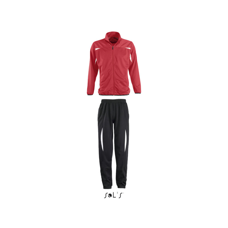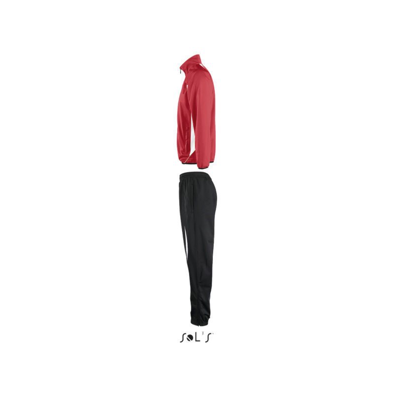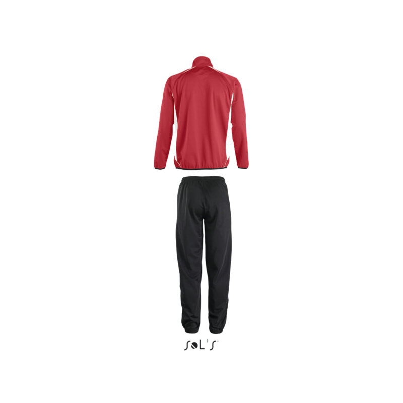 Дитячий тренувальний костюм SOL’S CAMP NOU KIDS. Куртка, пояс і манжети оздоблені еластичною діагональною резинкою. Передня застібка і кишені на блискавці. Великі контрастні перфоровані вставки з боків і на рукавах гарантують оптимальну повітропроникність. Матеріал: Інтерлок, поліестер 100%.
