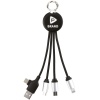 Універсальний кабель 4-в-1 для зарядки гаджетів із білою світлодіодною панеллю. Довжина 13,7 см. Має стандартний USB вхід для підключення живлення та три різні виходи 2 Micro USB, Lightning, Type-C.