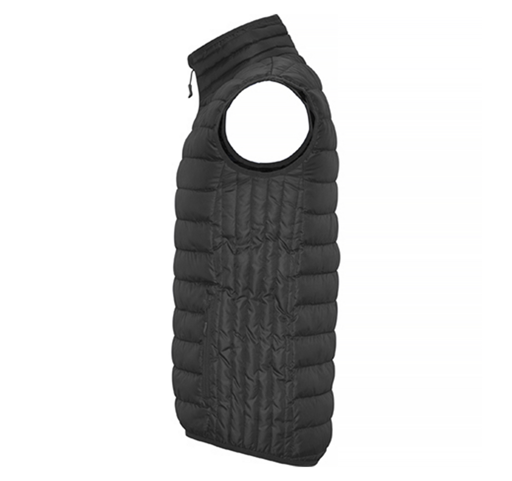 Чоловічий жилет, водовідштовхувальний та вітронепроникний 100% поліестер , дві зовнішні кишені , набивка 100% поліестер з ефектом пера, воріт високий з захистом для підборіддя, внутрішня підкладка поліестер. В комплекті мішок зі шнурком в який легко складається жилет.