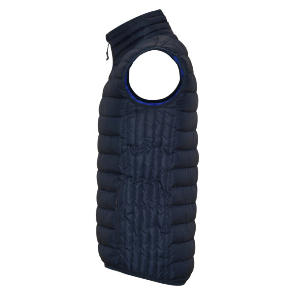 Чоловічий жилет, водовідштовхувальний та вітронепроникний 100% поліестер , дві зовнішні кишені , набивка 100% поліестер з ефектом пера, воріт високий з захистом для підборіддя, внутрішня підкладка поліестер. В комплекті мішок зі шнурком в який легко складається жилет.